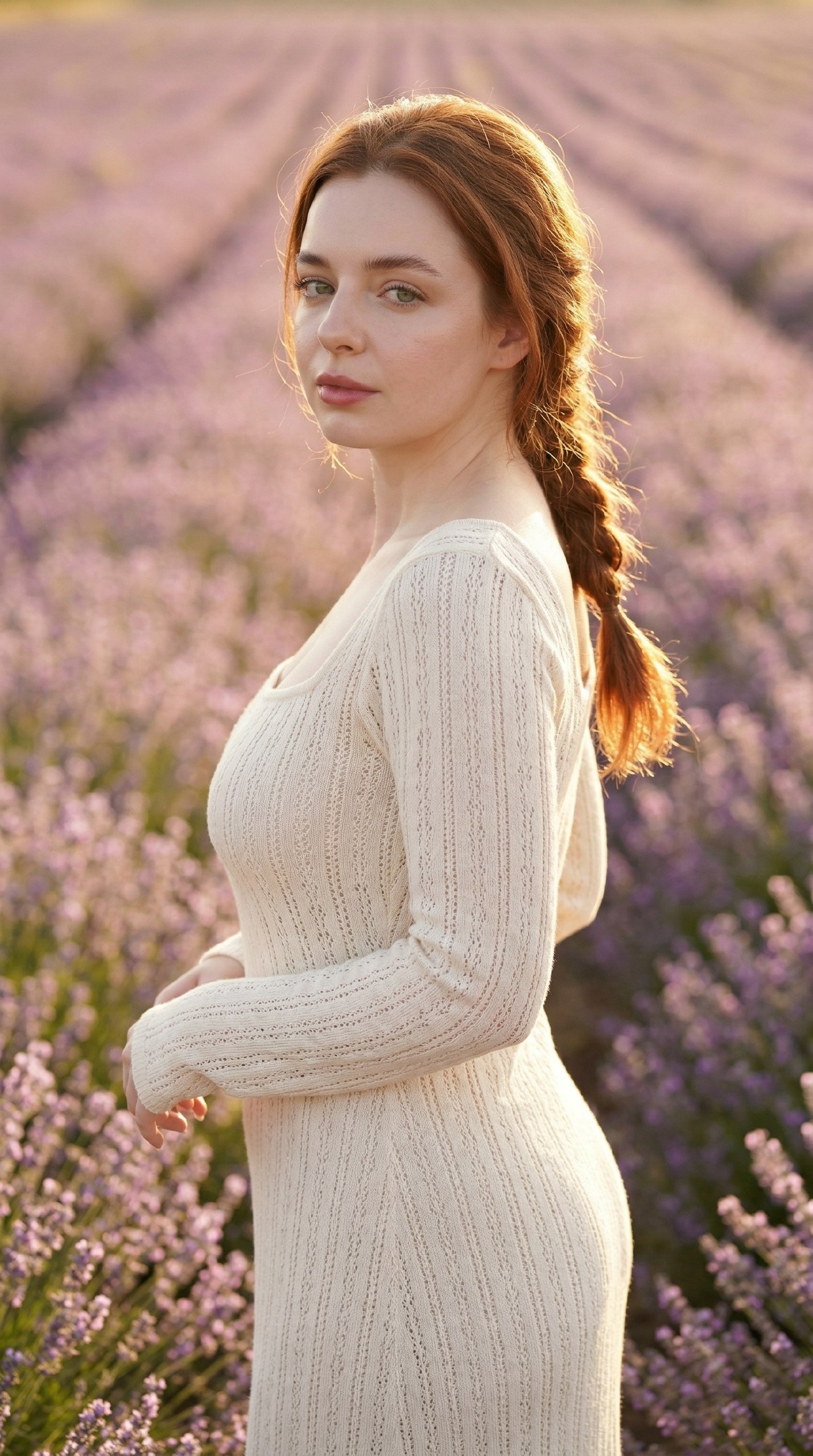 Ощутите спокойствие бескрайних цветочных полей 💜. Фактурное светлое платье, нежно заплетенная коса и теплый закатный свет создают невероятно романтичный образ. Мягкие лиловые оттенки лаванды добавляют кадру кинематографичную глубину и уют. Хотите примерить эту французскую эстетику? Забирайте промт и создавайте свой шедевр прямо сейчас ✨.