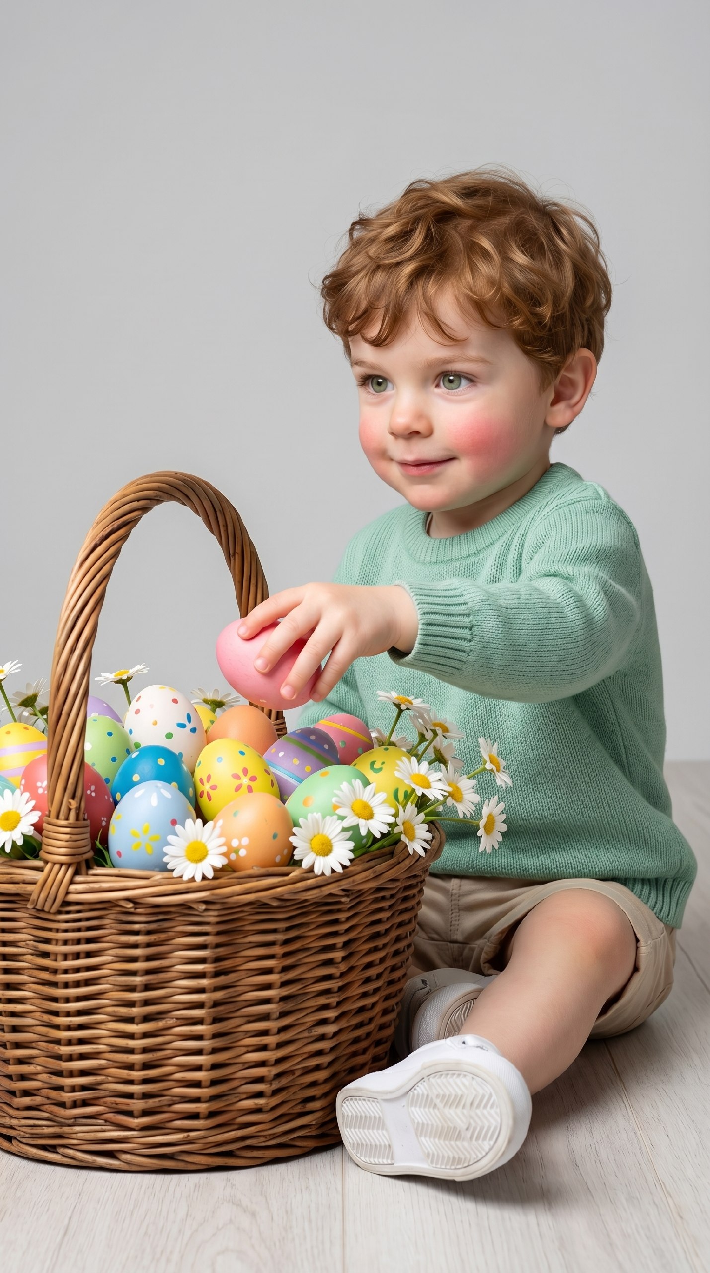 Мятный оттенок — это новый черный весной. Базовый свитер шикарно контрастирует с пестрыми пасхалками. Ромашки в корзине добавляют легкой, воздушной беззаботности. Весь кадр дышит чистотой и дорогим минимализмом. Никакого перегруза, только выверенная до пикселя эстетика. Ваши соцсети скажут громкое спасибо за красоту.