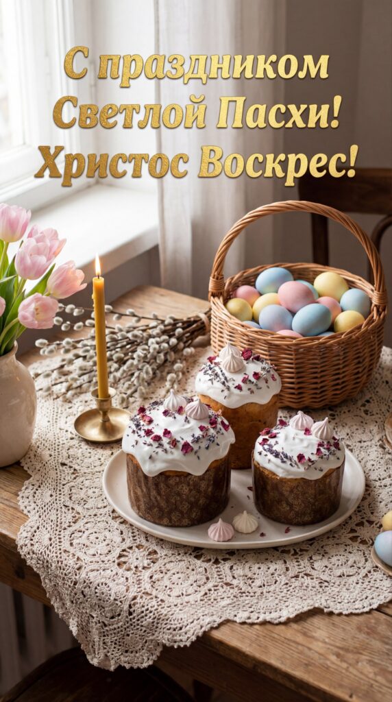 Пасхальная композиция наполнена нежностью весенних цветов и мягким солнечным светом. Тончайшее кружево ручной работы подчеркивает изысканность праздничного стола. Ароматные куличи, украшенные лавандой, создают атмосферу домашнего тепла и уюта. Каждый элемент здесь продуман для создания идеального визуального контента. Погрузитесь в мир светлой радости и утонченного праздничного стиля.